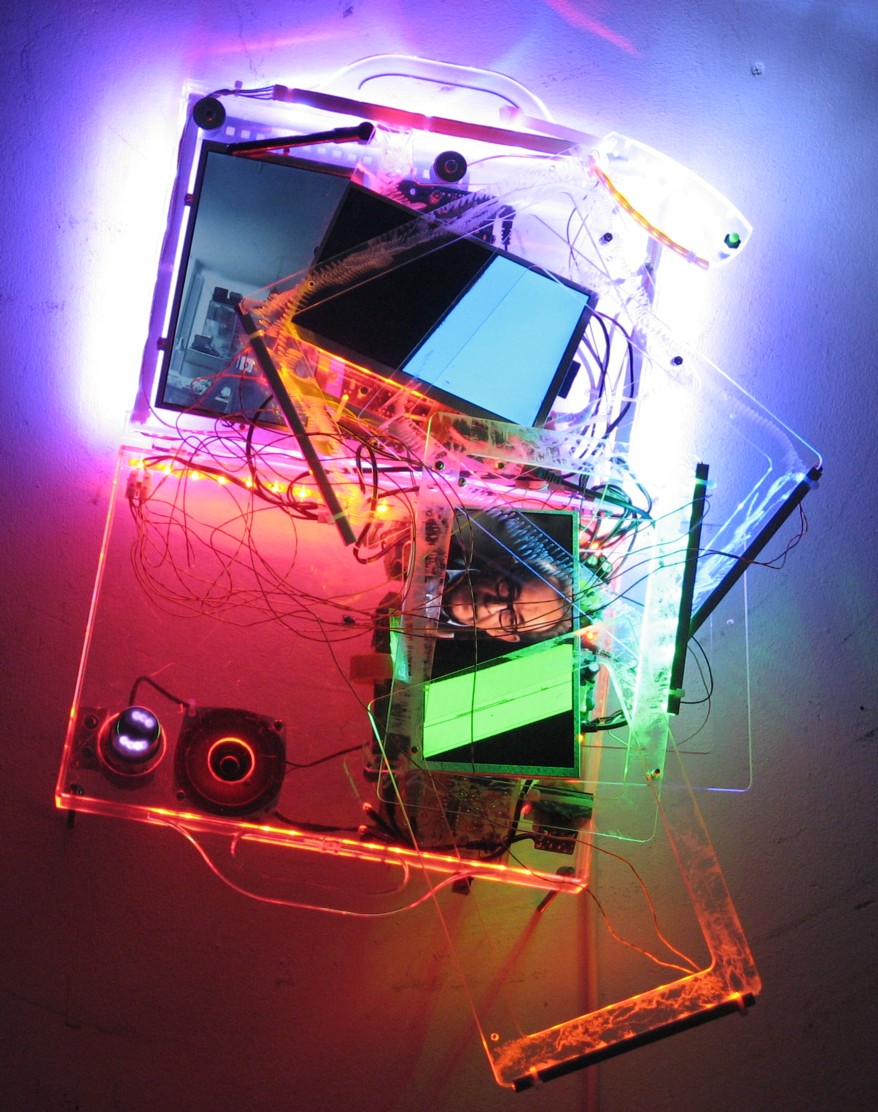 Die Idee, einige meiner Werke "Portraits" zu nennen, kam als ich 2006 ein Lichtobjekt aus dem Logo der WAZ-Mediengruppe entwickelte. Ich baute einen kleinen DVD-Player ein mit Abbildungen und einer Sprechmontage, eine Art "Sprechgesang" der Chefredakteure von vier Tageszeitungen. So entstand das erste - nicht ganz humorfreie - Firmen-Portrait. Seitdem spielen Satire und Nonsense eine Rolle in meinen multimedialen Portraits und | ||||||||||||||||||||||||||||||||||||||||||||||||||||||||||||||||||||||||||||||||||||||||||||||||||||||